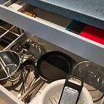 Elektromos vízforralót, konyhai edényeket és mosógépet szintén kínálnak. A legközelebbi buszmegálló a Pētersalas iela, mindössze 350 méterre.
